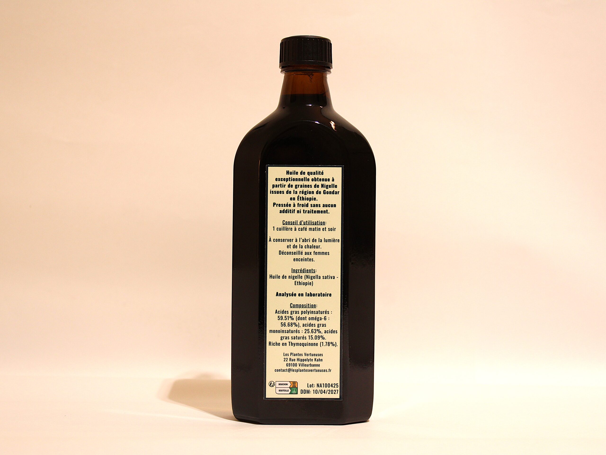 Ingrédients : Huile de nigelle (Nigella sativa – Ethiopie) sans aucun ajout ni traitement chimique.
