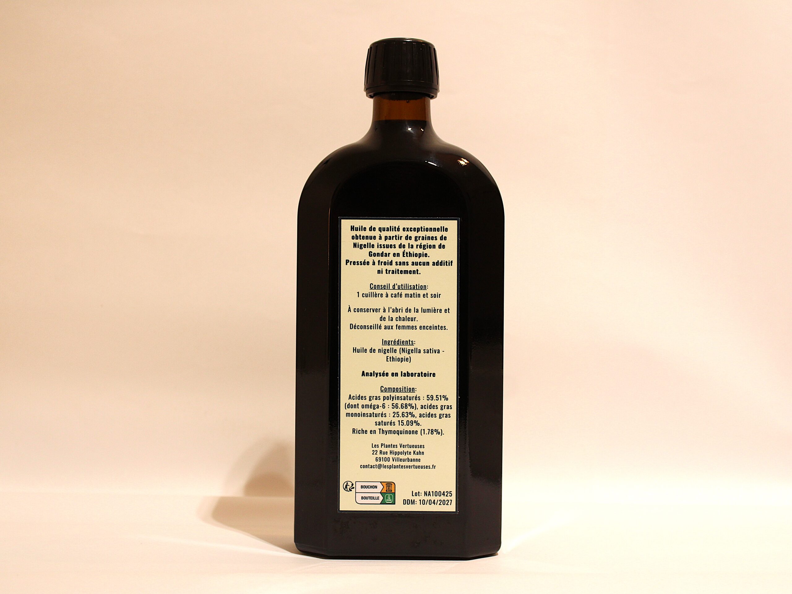 Ingrédients : Huile de nigelle (Nigella sativa – Ethiopie) sans aucun ajout ni traitement chimique.